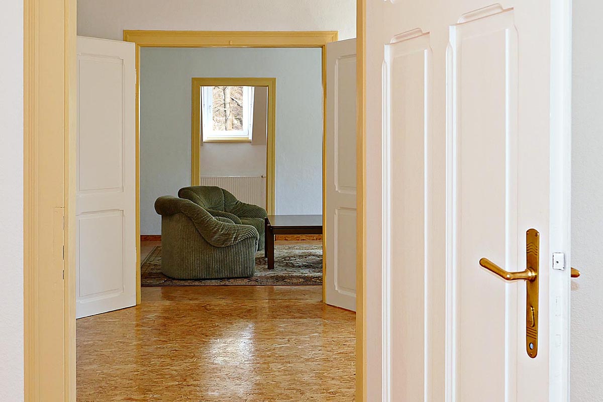 GrundrißTreppenaufgang zur zweiten EtageDetailphotodas Treppenhaus in der zweiten Etage, rechts der Aufgang zur DachetageEingang zur Wohnung in der zweiten EtageBlick vom Flur in das Bad (links) und in die Küche (rechts)Blick vom Flur in das zweite und dritte Zimmer, rechts die Tür führt in das fünfte Zimmer; links die Wohnungseingangstürdas erste Zimmerdas zweite Zimmerim zweiten Zimmer, rechts der Blick in das erste ZimmerBlick vom Flur in das dritte ZimmerBlick vom dritten Zimmer in das zweite ZimmerDetailphotodrittes und zweites Zimmerviertes ZimmerBlick vom vierten durch das zweite und dritte bis zum ersten Zimmerfünftes Zimmerder Blick durch das Fensterfünftes Zimmer, die Doppelflügeltür führt zum Flurdas sechste Zimmer mit südlicher Lagesechstes ZimmerBadezimmerDuscheBadezimmerdas Badezimmer ist mit einer Fußbodenheizung ausgestattetKüche mit Blick nach Südwest ...... bessere Sicht bei geöffnetem FensterDer hintere Teil der Küche wäre für Spüle und Herd geeignet, das kann auch in einen Raumteiler integriert werden, der bis zu diesen beiden Säulen führt. Hier vorn ist Platz für einen großen Eßtisch.Der Blick von der Küche über den Flußwieder zurück im Flur; die linke Tür der Trennwand ...... hier im Detail ...... führt zur Besuchertoilettehiermit verlassen wir die Wohnungund steigen die Treppe hinab